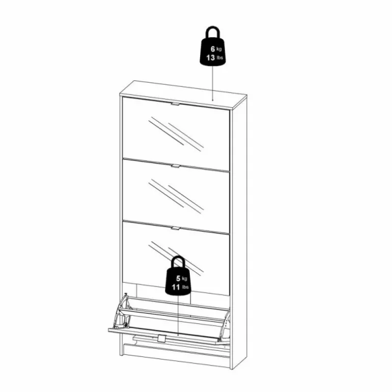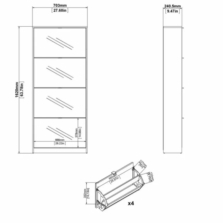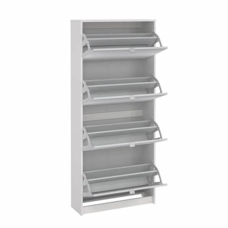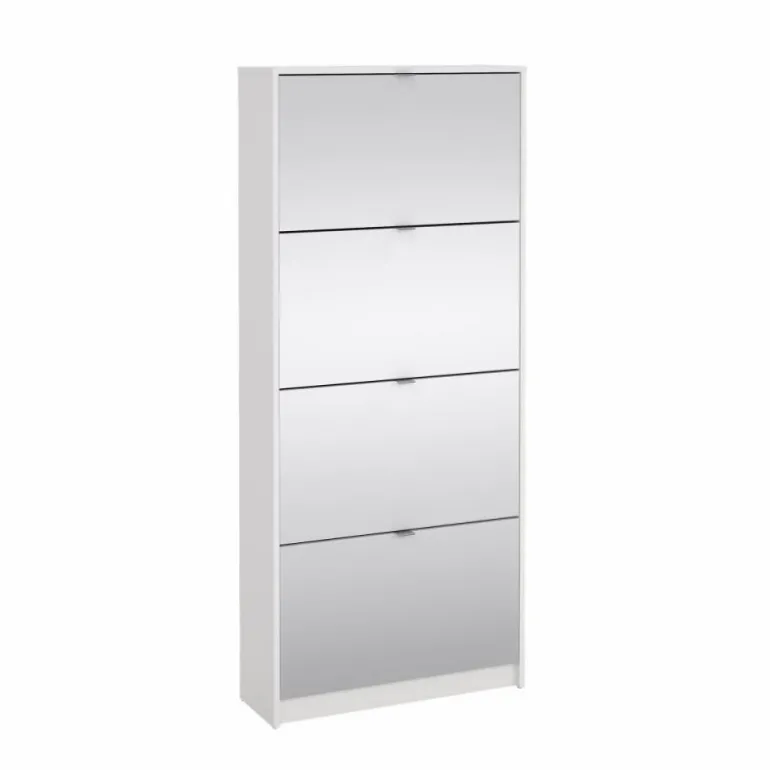 Shoes Skoskab 4 spejl klaplåger med 2 rum – Hvid / Hvid