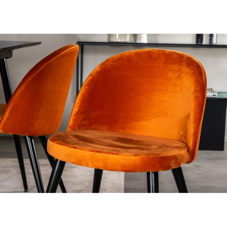 - Komfortable Stole: Fire stole med rustorange velour, der tilbyder både komfort og elegance.