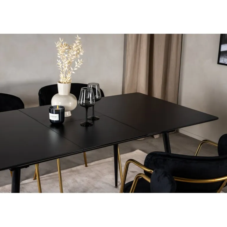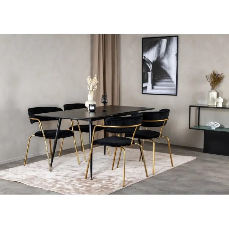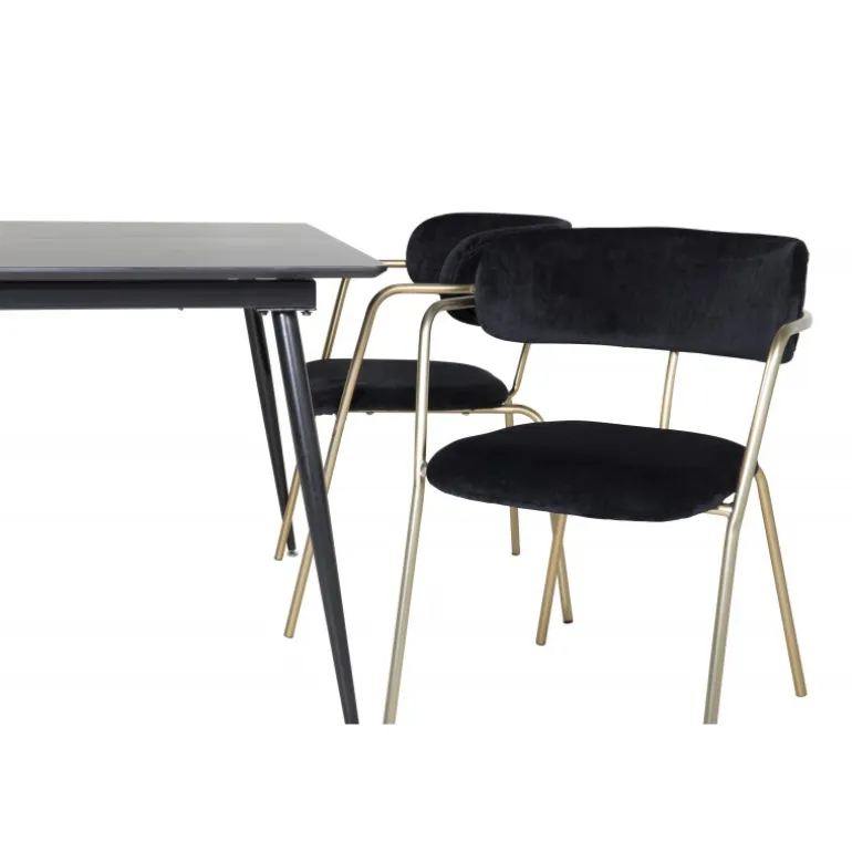 Moderne og luksuriøs. Kombinationen af vores stilrene spisebord i serien Silar og vores elegante spisestuestole Arrow skaber en Spisebordssæt, man længes efter at komme hjem til. De høje siddekomfort i stolene inviterer til lange og vidunderlige stunder med socialt samvær!