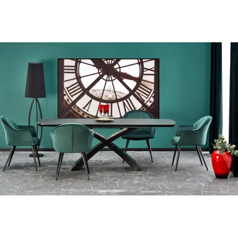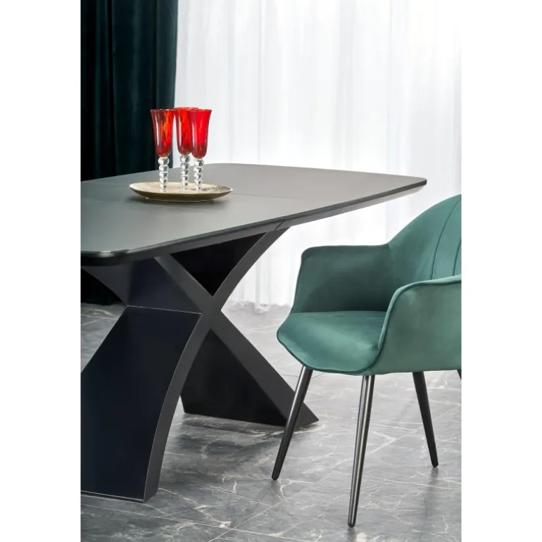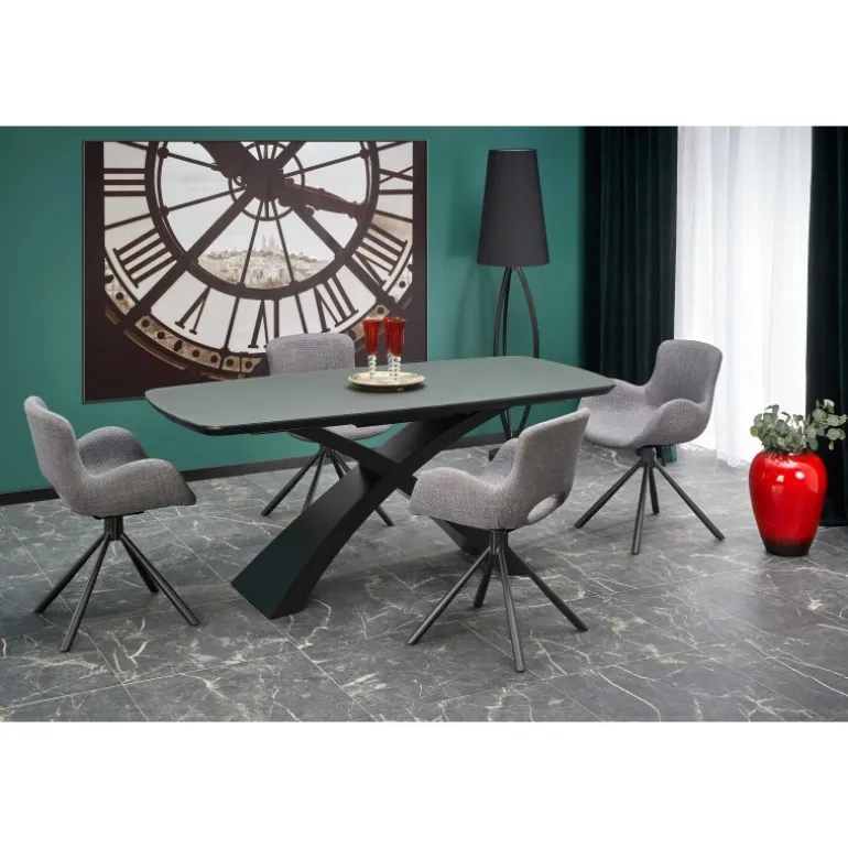 SILVESTRO bord mørkegrå med Sorte ben er en elegant og moderne tilføjelse til dit hjem. Dette Spisebord med udtræk er perfekt til både små og store sammenkomster. Med en bordplade i glas og lakeret MDF får du en robust og stilfuld overflade i mørkegrå, som passer perfekt til de Sorte ben. Bordet kan nemt udvides fra 180 cm til 220 cm, hvilket giver dig fleksibilitet til enhver begivenhed. Uanset om det er til middage, arbejdsstationer eller hobbyprojekter, er SILVESTRO det ideelle valg.