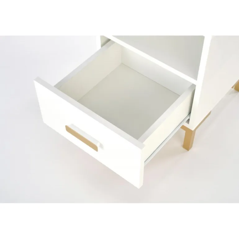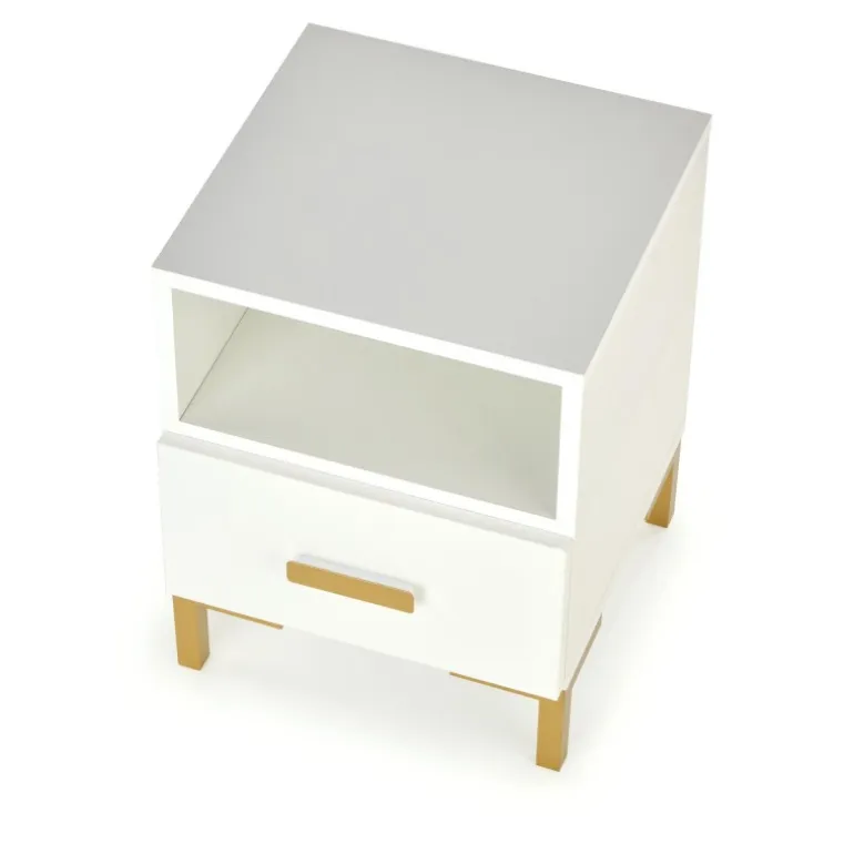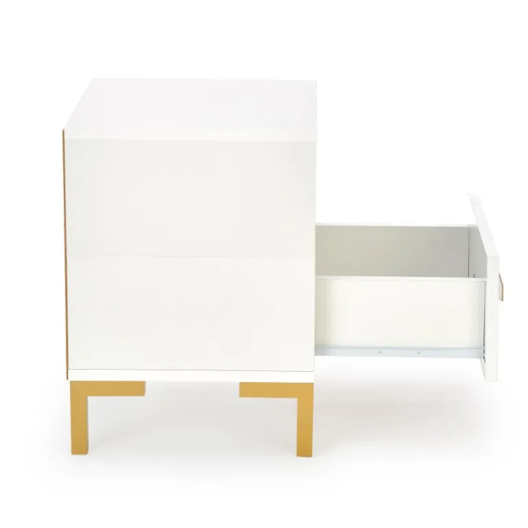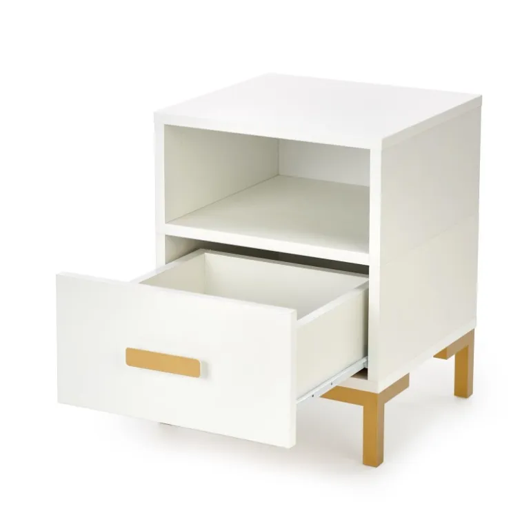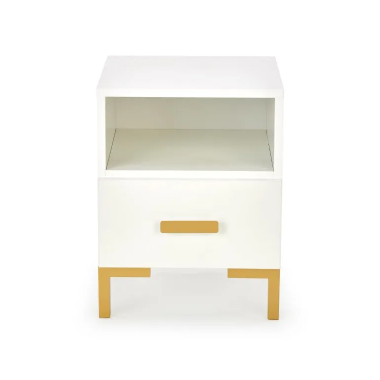 Opgrader dit soveværelse med det elegante SILVIA natbord i klassisk hvid og guld. Dette stilfulde møbel er fremstillet af laminatspånplade og polypropylen, som sikrer både holdbarhed og et luksuriøst udseende. Med dimensionerne 40/40/52 cm passer det perfekt ved siden af din seng og giver rigelig opbevaringsplads til dine nødvendigheder. SILVIA natbord kombinerer funktionalitet og æstetik, hvilket gør det til det ideelle valg for dig, der ønsker at tilføje et strejf af elegance til dit soveværelse.