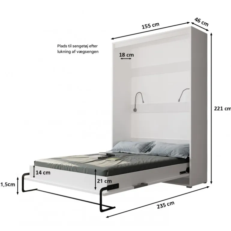 - Plads til sengetøj ved lukning: Op til 18 cm