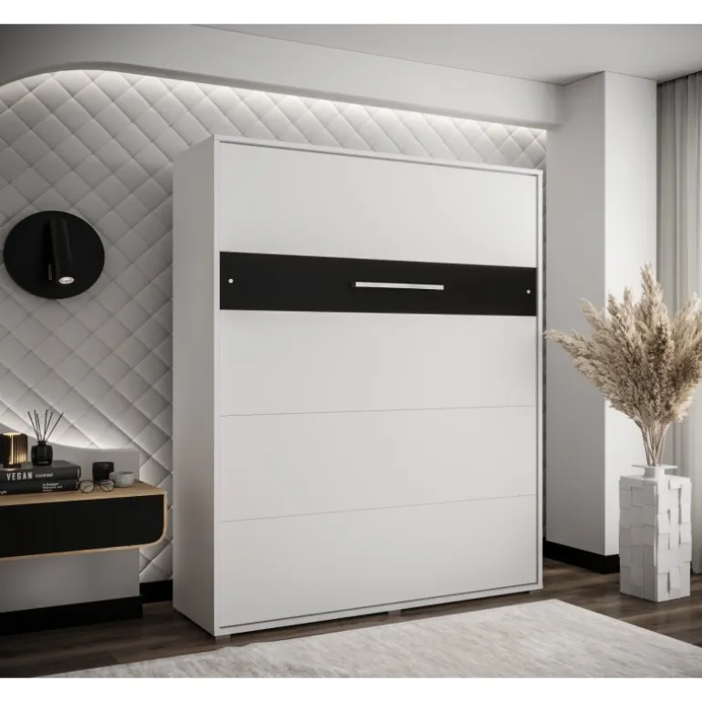 Nordica skabssengen i størrelsen 160×200 cm er den perfekte løsning til dig, der ønsker et stort, komfortabelt leje kombineret med maksimal gulvplads. Den lodrette konstruktion gør sengen velegnet til rum med begrænset bredde, og det enkle, elegante udtryk i hvid og sort mat passer smukt ind i moderne skandinaviske hjem.