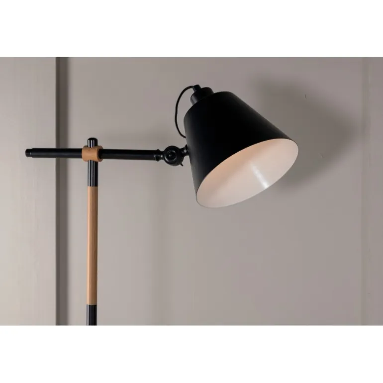 Skott Belysning er en elegant sort stålampe med trædetaljer, der tilføjer et stilfuldt touch til dit interiør. Lampeskærmen kan vippes op eller ned afhængigt af dine behov, hvilket gør den ideel som læselampe eller som en smuk indretningsdetalje. Den er lavet af holdbart stål og PVC, hvilket sikrer langvarig brug. Perfekt til ethvert hjem, hvor stil og funktionalitet går hånd i hånd.