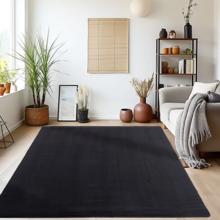 Sky Kortluvet tæppe Ensfarvet – Sort