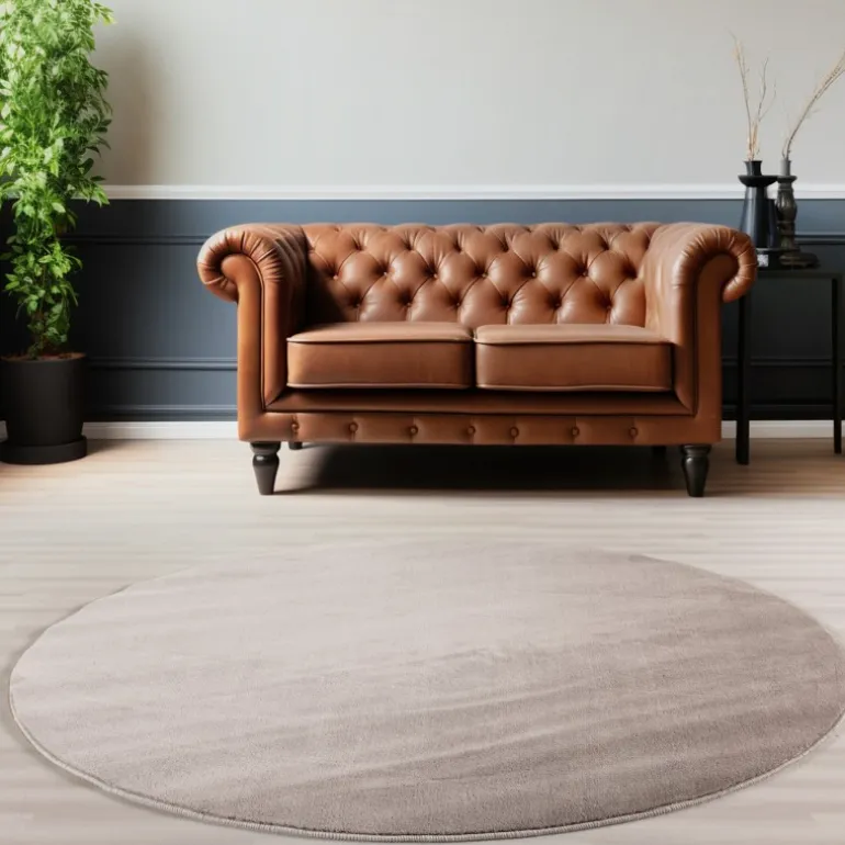 Sky Rund Kortluvet tæppe Ensfarvet – Beige