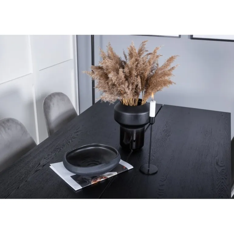 Med det klassiske og moderne spisebord Slank kan hele familien samles til middag og socialt samvær. Her sammen med vores komfortable grå spisestole Polar. Lad tiden ved spisebordet blive en af dagens højdepunkter! Dette Spisebordssæt kombinerer elegant design med funktionalitet og komfort. Sæt består af et sort spisebord med egetræsbordplade og grå spisestole, der passer perfekt til enhver indretning.