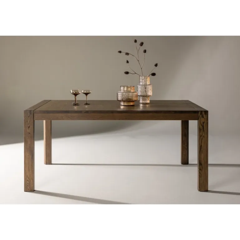 Slider Spisebord er et spisebord i egetræslook, der imponerer med sin varme, jordnære farve! Slider er vores populære, udtrækkelige spisebord, der fungerer lige så godt til hverdagslivet som til festmåltider! De lige nordiske former skaber et luftigt og moderne helhedsindtryk i rummet, og bordet er let at matche med anden indretning. Kombiner med et par lækre og komfortable spisebordsstole og nyd en indbydende Spisebordssæt! Plejeråd: Til daglig rengøring af træmøbler indendørs er en tør klud den bedste løsning. Ved eventuelle pletter anvend en fugtig klud, men undgå at gennembløde – og tør straks efter. Både opløsningsmidler og blegemidler bør undgås, da de kan ødelægge overfladens finish. Beskyt gerne overfladen med bordskånere for at undgå pletter fra spildte væsker og varme genstande.