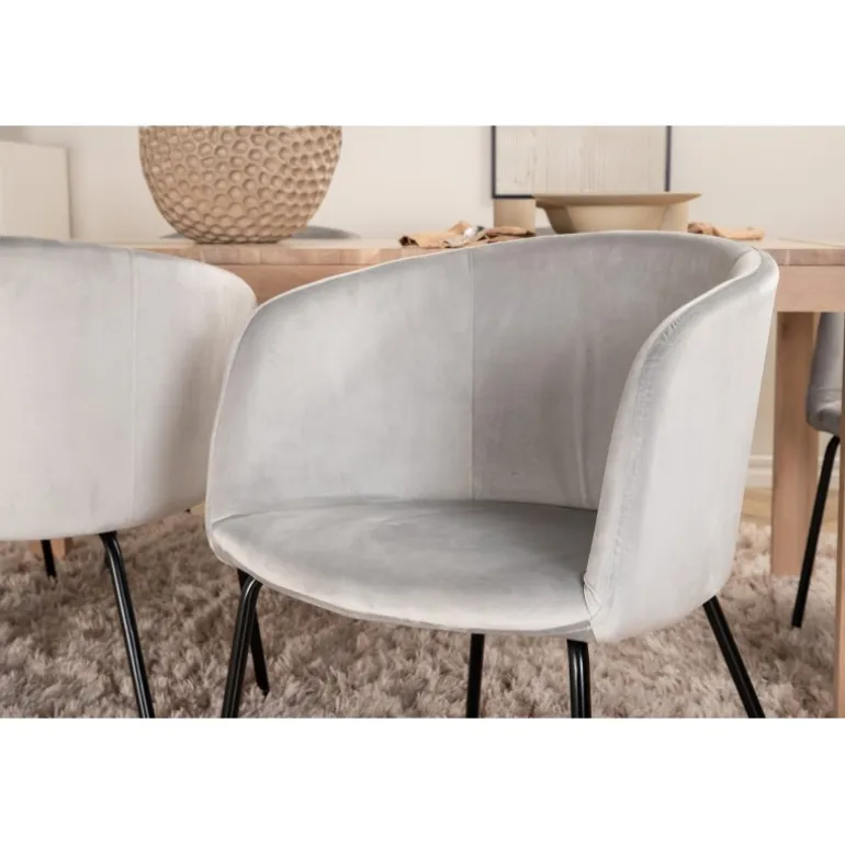 - Luksuriøse stole: Lysgrå fløjlsæder med sort jernben.