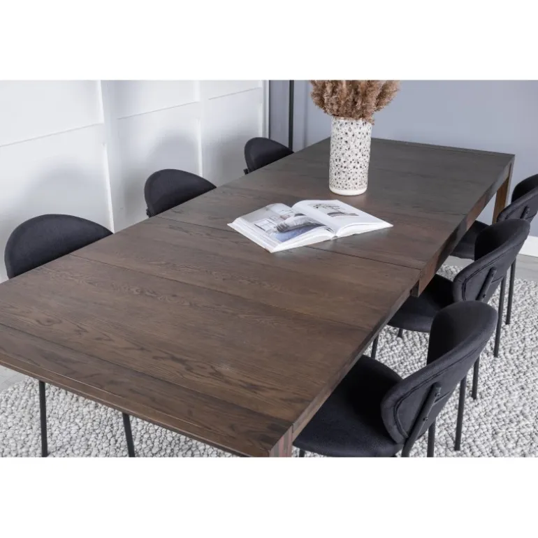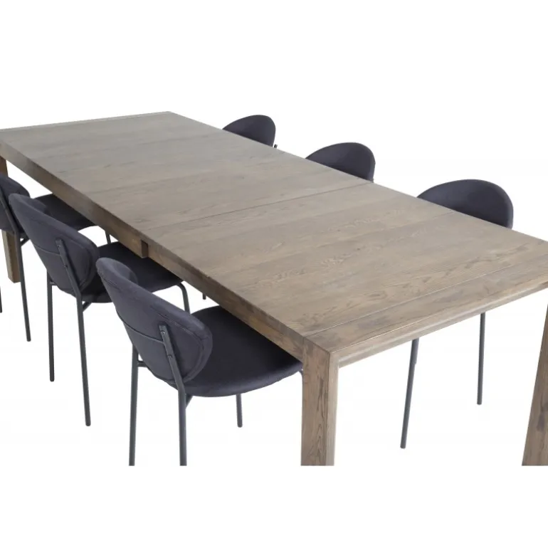 Slider Rektangulært Spisebordssæt er det perfekte valg til din spisestue. Med et elegant egetræslook og forlængelsesmuligheder er dette Spisebordssæt både stilfuldt og funktionelt. Det kombineres her med de stilfulde Vault spisestole, som er designet til at skabe en sammenhængende og moderne atmosfære. Perfekt til både små og store selskaber, vil dette Spisebordssæt bringe elegance og komfort til dine måltider.
