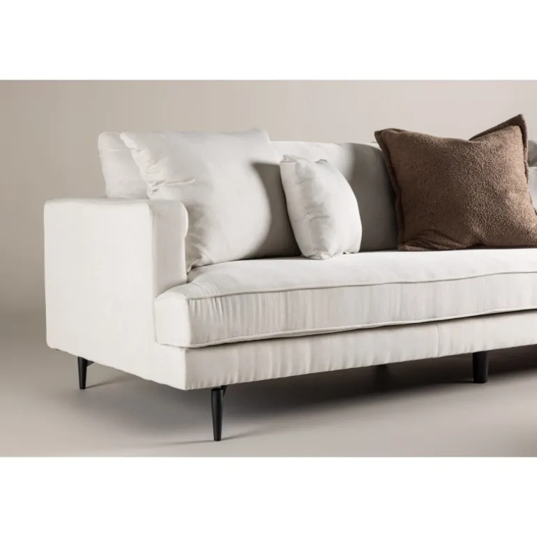 En drømmesofa til alle moderne hør-elskere lige nu! Denne beige sofa fra Sofia-serien er en rummelig 3 personers sofa med stilfuldt beige hør og fokus på høj komfort. Følg vores tips til bedste pleje, og du får også en sofa, der holder over tid. Designet er både iøjnefaldende og afslappende med sin bløde og indbydende overflade, der er perfekt at synke ned i efter en lang dag. Sofaen er bygget op af puder, der udgør ryglænet og også pryder armlænene. Den understøttes af fire ben i sort metal, som giver et flot løft og letter støvsugningen. Lige så god som praktisk simpelthen. Hyg med familien eller bred dig alene!