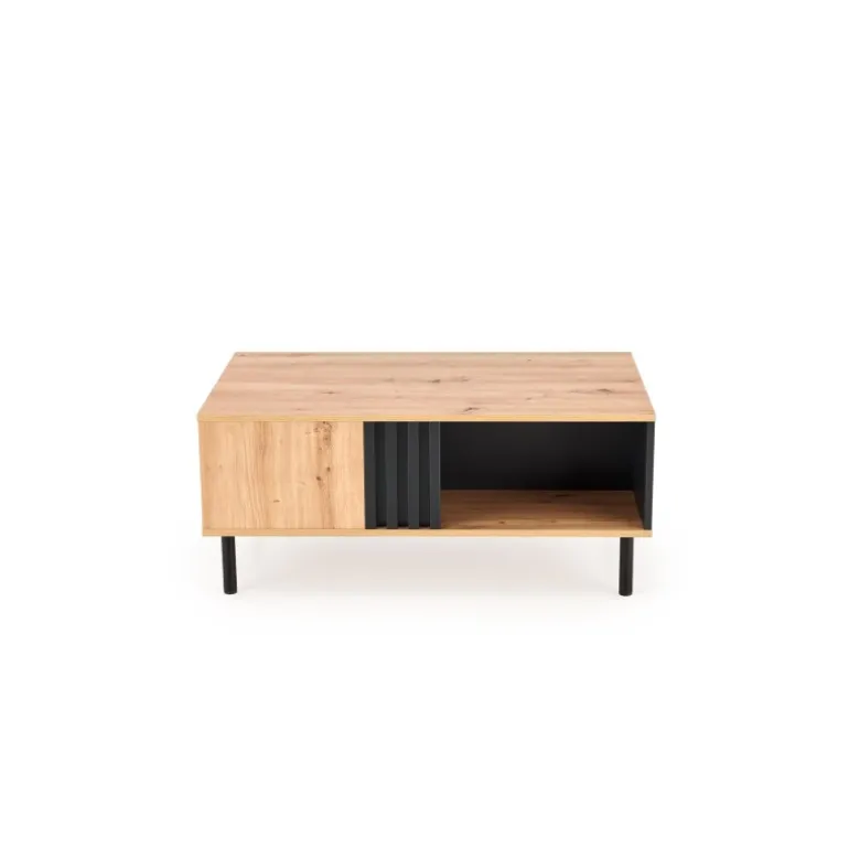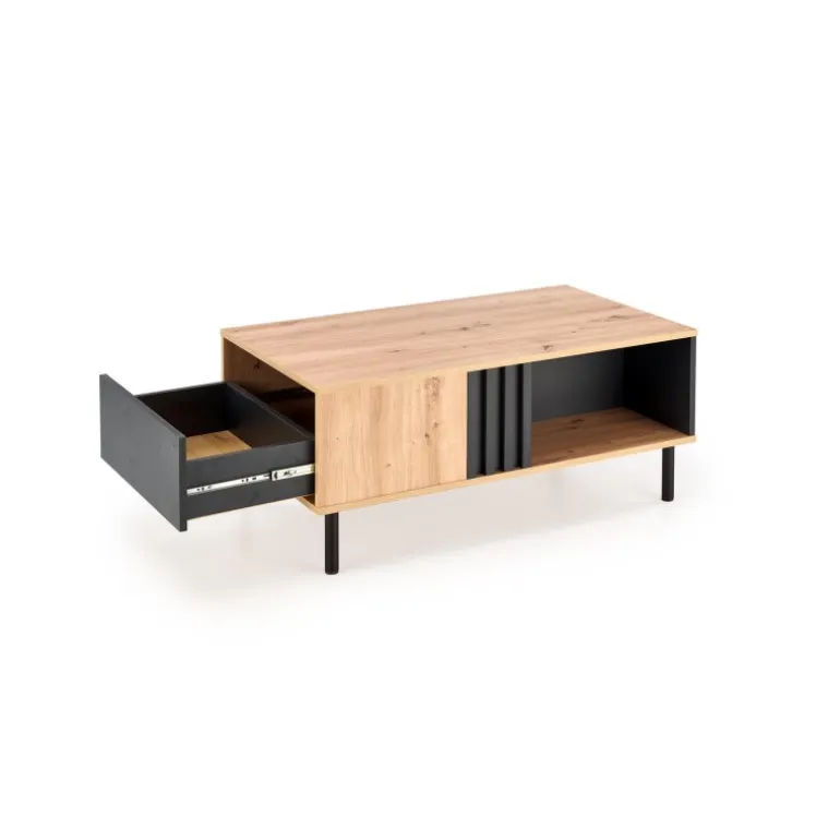 SONIA sofabordet i håndværkseg og Sort kombinerer stil og funktionalitet. Med dimensionerne 100/60/43 cm passer det perfekt ind i enhver stue. Det er fremstillet af lamineret spånplade og pulverlakeret stål, hvilket sikrer holdbarhed og et moderne udseende. Tilføj et strejf af elegance til dit hjem med dette sofabord.