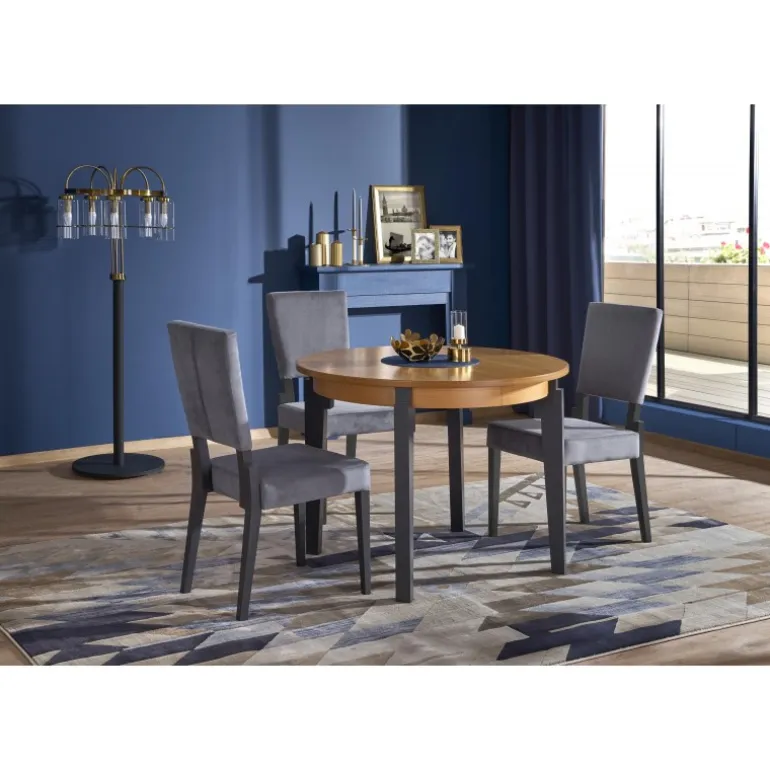 Oplev elegance og funktionalitet med SORBUS bord gylden eg / grafit. Dette Spisebord med udtræk er perfekt til både små og store rum. Med dimensioner på 100÷200/100/77 cm kan du nemt justere bordets længde efter behov. Bordpladen er lavet af MDF med naturlig egetræsfiner, mens benene er fremstillet af massivt bøgetræ i en stilfuld grafitfarve. Det naturlige honningfarvede egetræ på toppen giver et varmt og indbydende udtryk. Denne kombination af materialer og farver skaber et tidløst møbel, der passer perfekt ind i ethvert hjem.