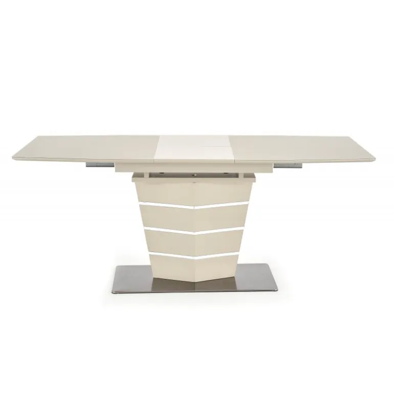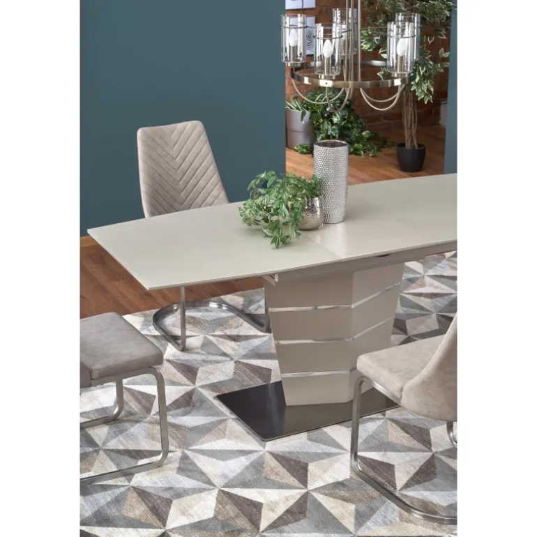 Oplev elegance og funktionalitet med SORENTO bordet. Dette luksuriøse udtrækkelige bord er designet til at passe perfekt ind i enhver moderne spisestue eller køkken. Med dimensionerne 140÷180/80/76 cm kan bordet nemt udvides for at rumme flere gæster. Materialet består af glas, lakeret MDF og rustfrit stål, hvilket sikrer både holdbarhed og et stilfuldt udseende. Den champagne matte farve tilføjer et touch af raffinement til dit hjem.