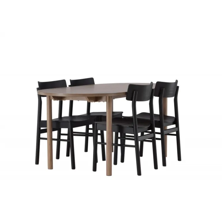 Skab tidløs elegance med et klassisk Spisebordssæt, der perfekt kombinerer charme og komfort! Vores ovale spisebord Andy tilbyder den perfekte kombination af minimalisme og charme til dit hjem. Det ovale spisebord Andy udstråler enkelhed med sin tynde MDF-bordplade og fire cylindriske ben. Den konsistente mørkebrune naturlige farve er tidløs og nem at matche med forskellige indretningsstile. Bordets dimensioner er 180×75 cm. Med de naturfarvede spisebordsstole fra Montros-serien får du en klassisk og stilfuld følelse i din stue. Lavet af birk og krydsfiner i en smuk naturlig træfarve, tilføjer disse stole et strejf af traditionel elegance til dit hjemmemiljø. Stolens ryg er let buet, og benene har en nordisk lige form, hvilket skaber en harmonisk helhed. Nyd en middag med familie og venner i dette klassiske Spisebordssæt, hvor du kan skabe mindeværdige øjeblikke, mens du nyder god mad og godt selskab. Det ovale bord giver nok plads til at rumme alle, mens det skaber en intim atmosfære, der får alle til at føle sig velkomne og afslappede!