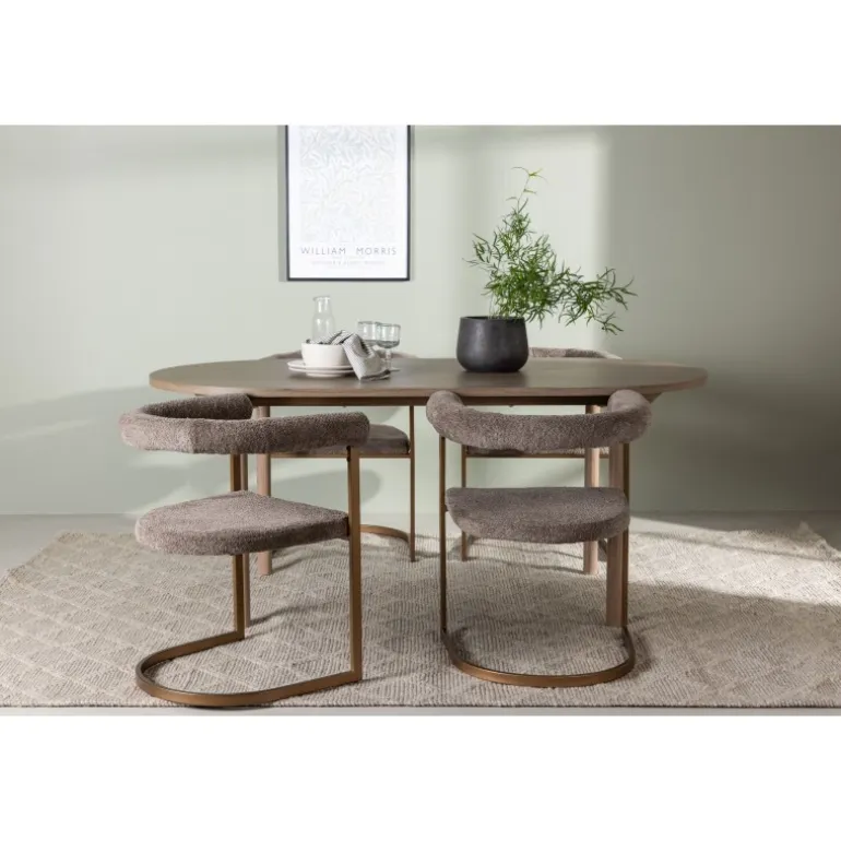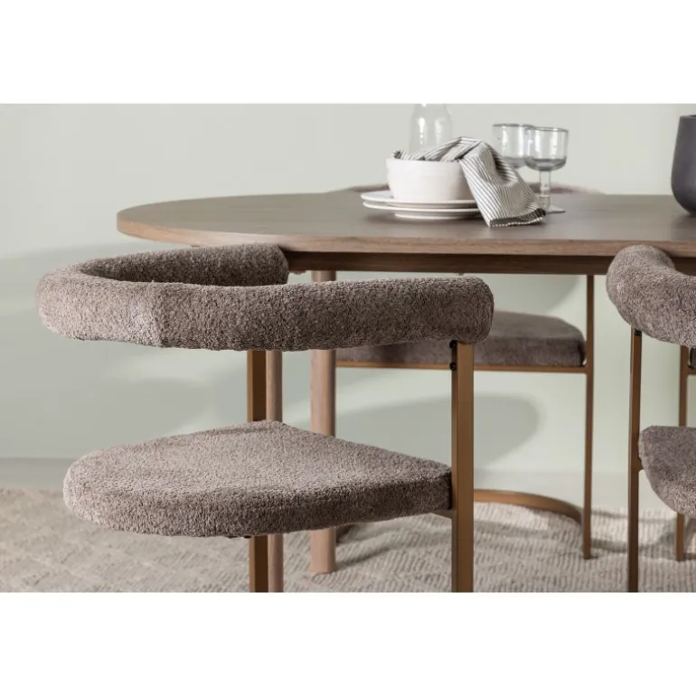 - Komfortable stole: Grå Polyester Boucle sæder med brune stålrammer.