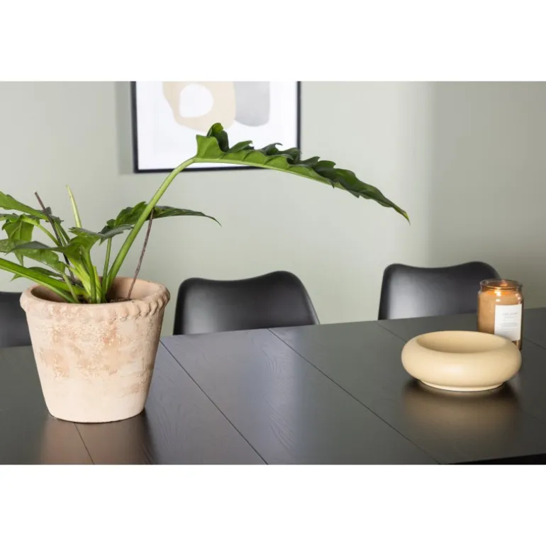 - Sort MDF bordplade med finer: Skaber en elegant atmosfære.