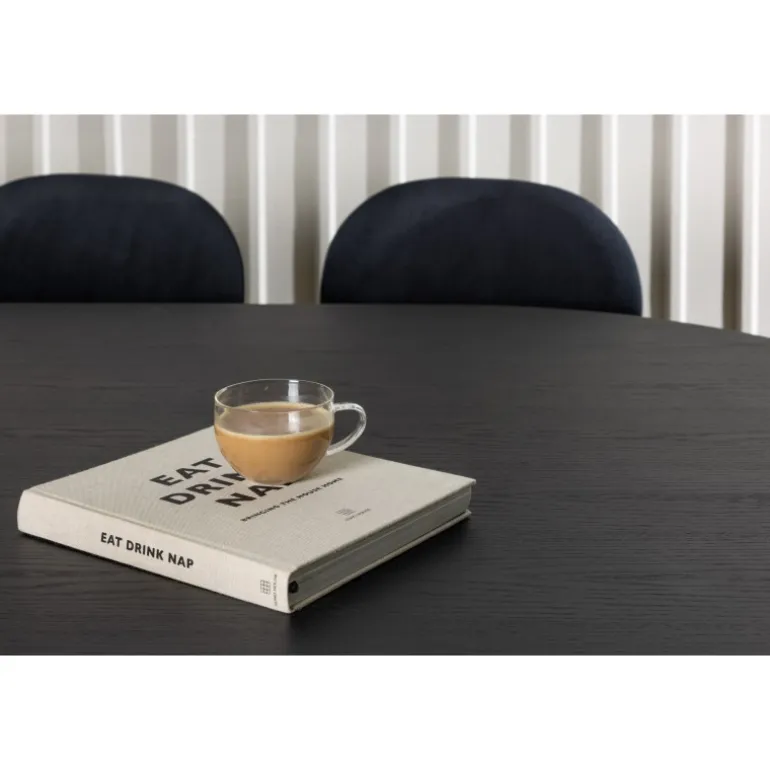 - Robust design: Det ovale bord er lavet af sort MDF med finer, hvilket sikrer holdbarhed og stil.