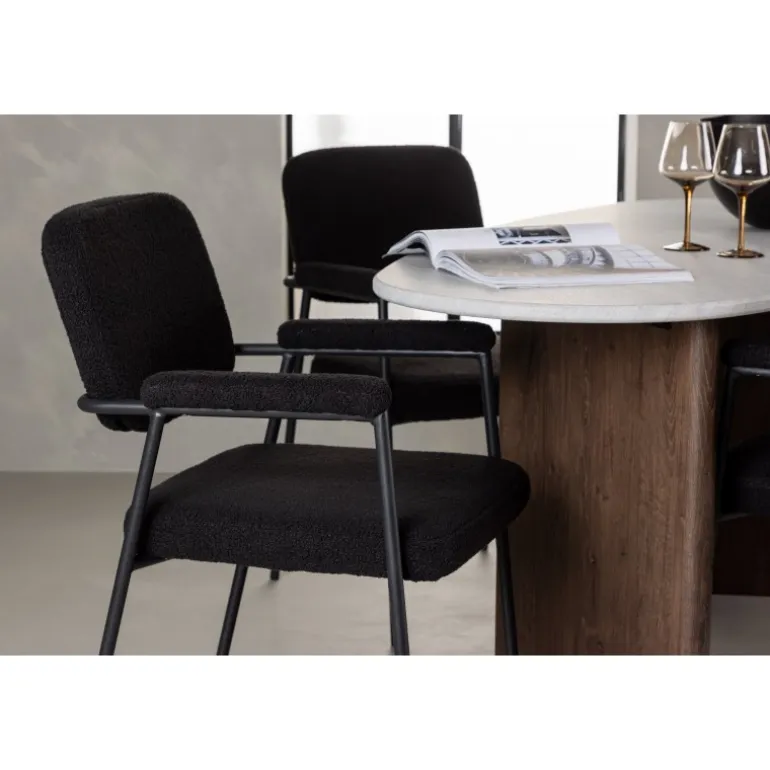 - Fuldt polstret sæde i sort bouclé stof