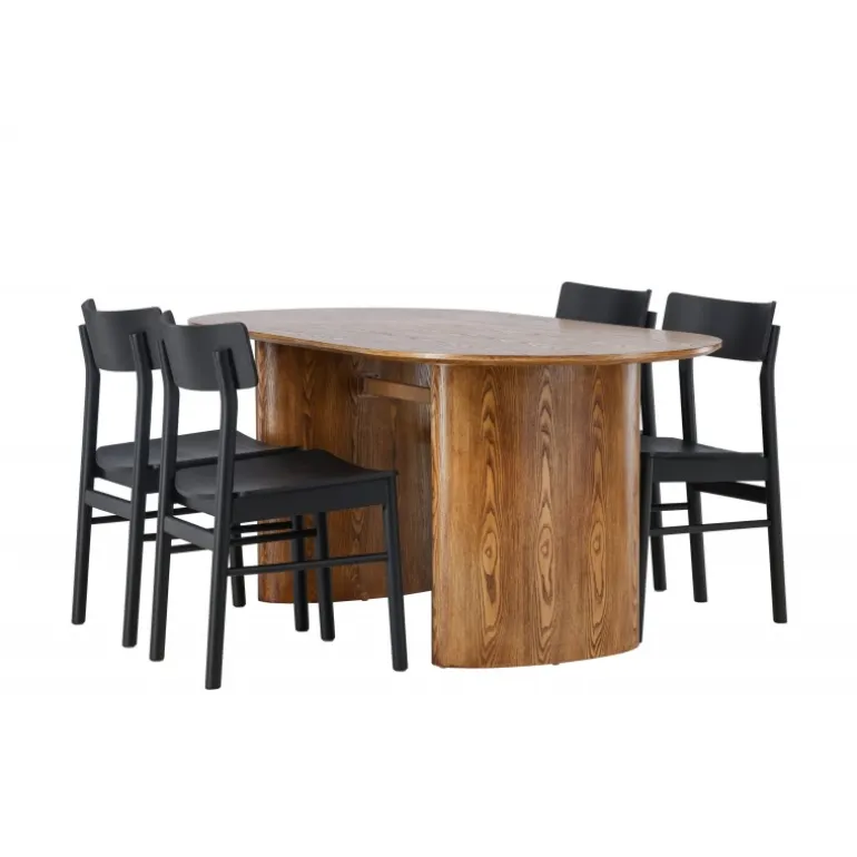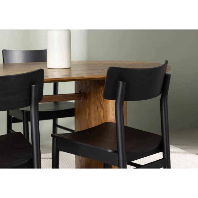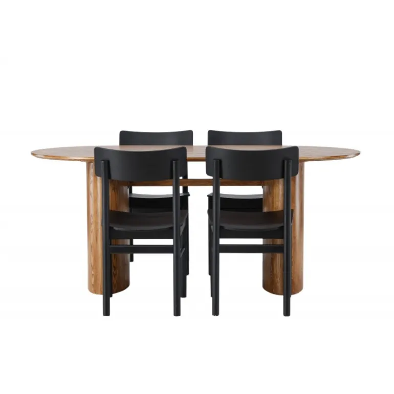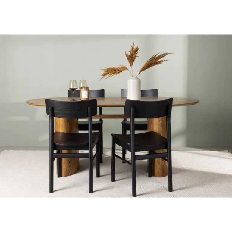 Et elegant og velovervejet Spisebordssæt i rustik stil, der passer perfekt takket være dets trætoner og nordiske former! Vores ovale spisebord i robust stil fra Isolde-serien kommer i en trendy naturlig nuance. Bordet har en oval MDF-bordplade og en solid ramme, der giver et stabilt indtryk. Det organiske materiale tilføjer også en stilfuld detalje til bordets samlede udseende. Bordets dimensioner er 140×75 cm. Med de naturfarvede spisebordsstole fra Montros-serien får du en klassisk og stilfuld følelse i din stue. Lavet af birk og krydsfiner i en smuk naturlig træfarve, tilføjer disse stole et strejf af traditionel elegance til dit hjemmemiljø. Stolens ryg er let rundet, og benene har en nordisk lige form, hvilket skaber en harmonisk helhed. Denne stilfulde kombination tilbyder dig et komplet Spisebordssæt, der kombinerer træmaterialer og nuancer på en perfekt og harmonisk måde. Inviter dine kære til hyggelige måltider i fremtiden og giv samtidig dit interiør et løft!