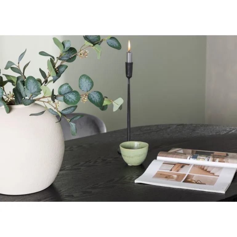 - Moderne design: Ovalt bord i sort MDF med robuste ben.