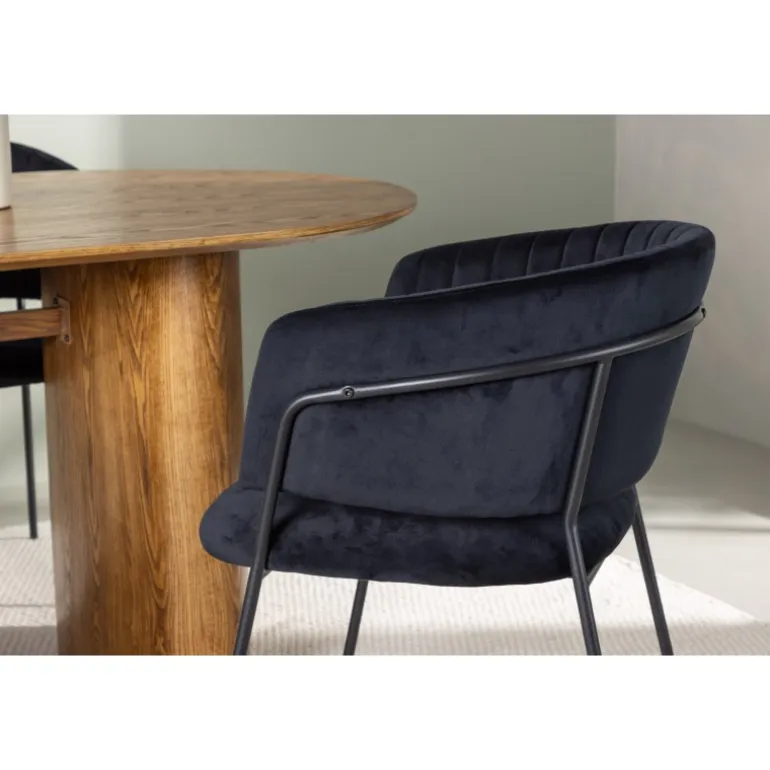 - Sorte fløjlstole Selma med fuld polstring og let afrundet ryg.