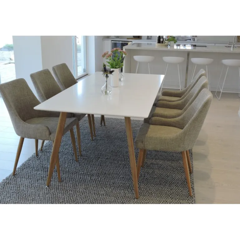 Med vores spisebord Polar og vores spisestole Plaza får du kombinationen – moderne, hyggelig og tidløs! Dette sæt er ideelt til enhver indretning, som kræver både stil og funktionalitet. Bordpladen i hvid MDF og stålrammen sikrer holdbarhed og lang levetid. Stolene i grå polyester linned og stål tilbyder komfort og elegance. Perfekt til både daglig brug og særlige lejligheder.