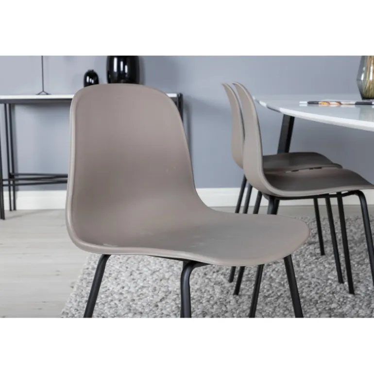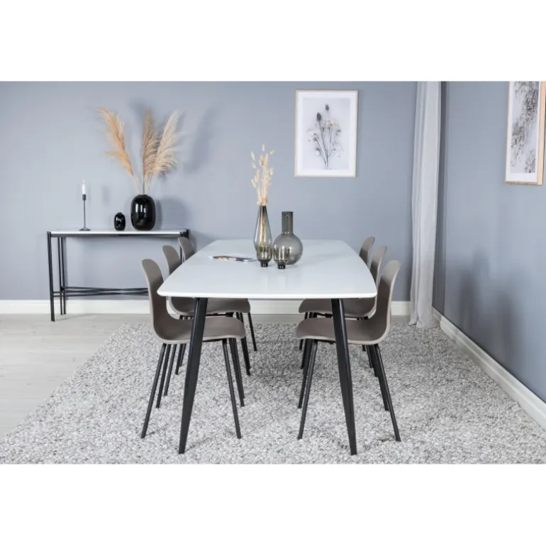Praktiske khaki-farvede spisestole fra Arctic-serien sammen med et pompøst spisebord fra Polar. Her får du en kombination, der er let, robust og moderne. Saml familien til gode middage og socialt samvær!