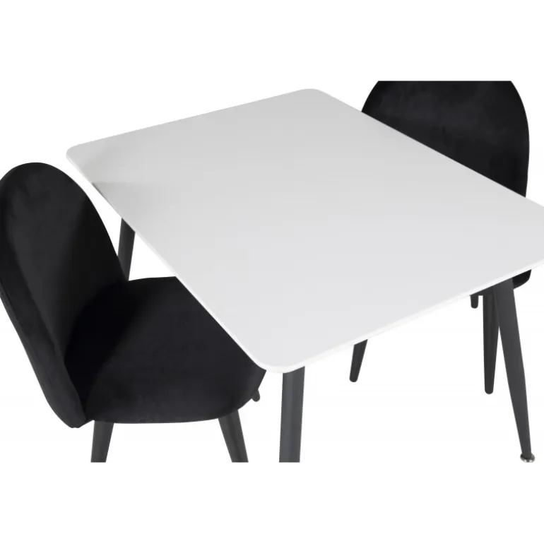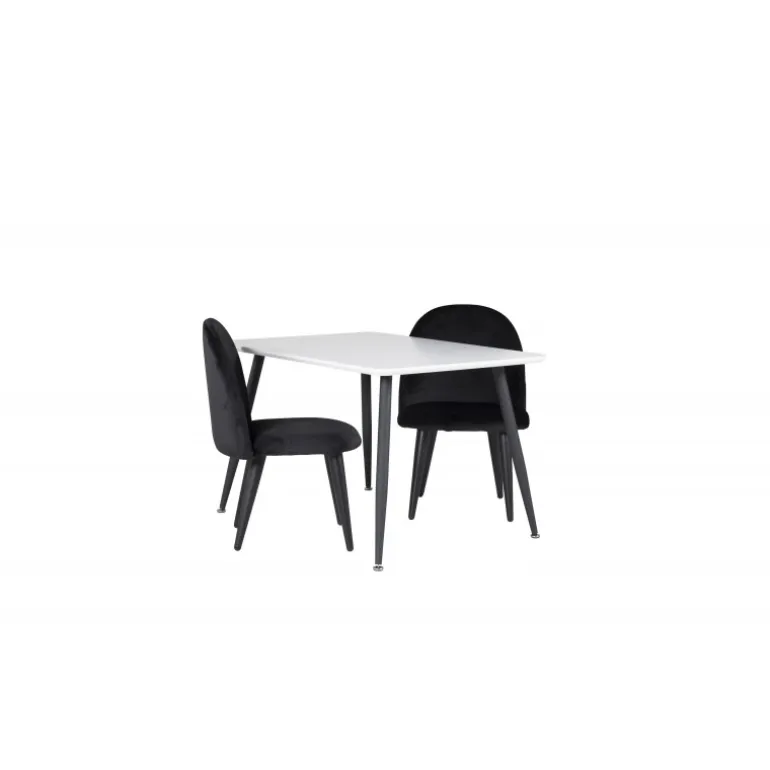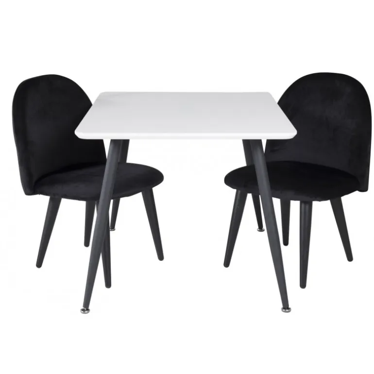 Dette moderne Spisebordssæt til børn er perfekt til deres egen lille spiseplads. Spisebordet fra Plaza-serien kombineres med de bløde stole fra Velvet-serien, hvilket skaber en hyggelig og stilfuld spiseoplevelse for de små. Bordpladen er lavet af MDF og kommer i en elegant hvid farve, mens stolene er beklædt med sort velour for maksimal komfort.