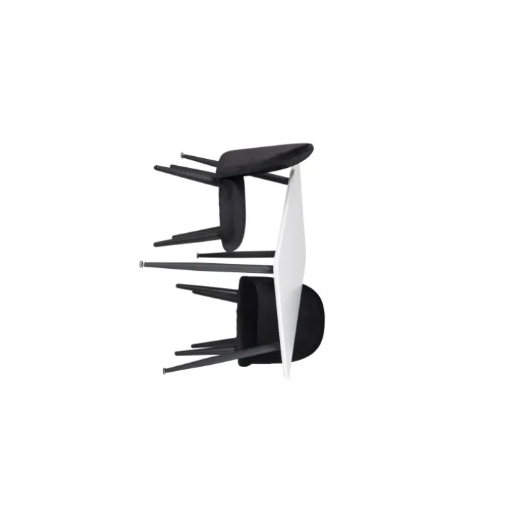 - Kvalitetsmaterialer: Bordplade lavet af MDF og stole af polyester velour.