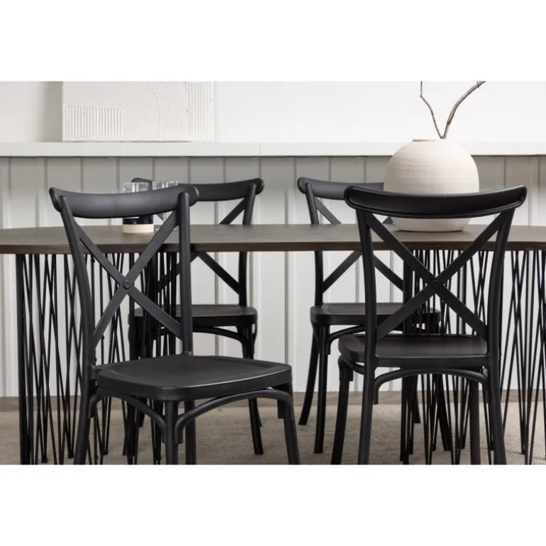 - Praktiske stole: Crosett stole i mat sort plastik.