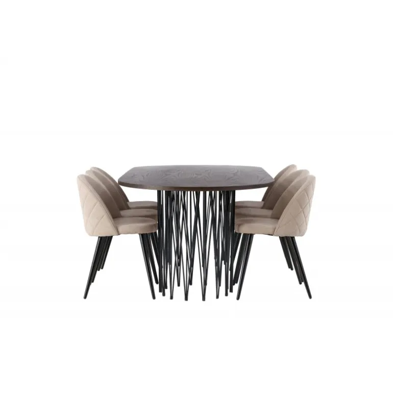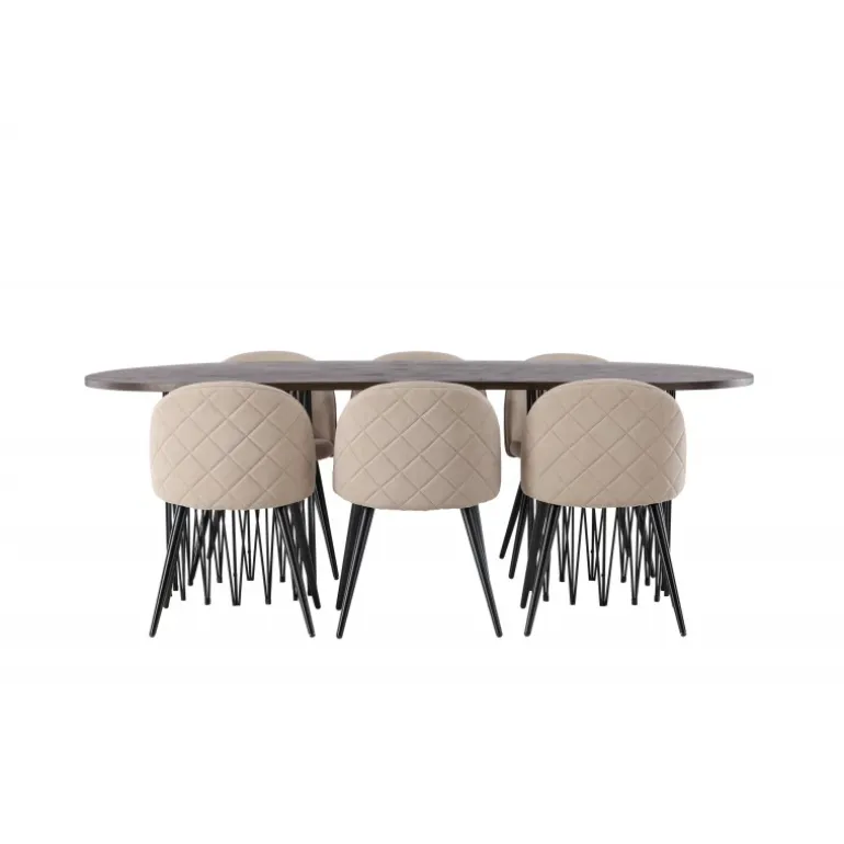 - Moderne design: Spisebord Stone med ovalt design og trendy Velvet stole.