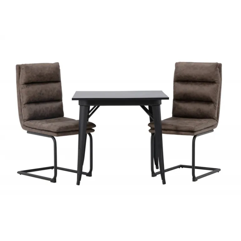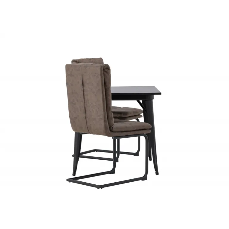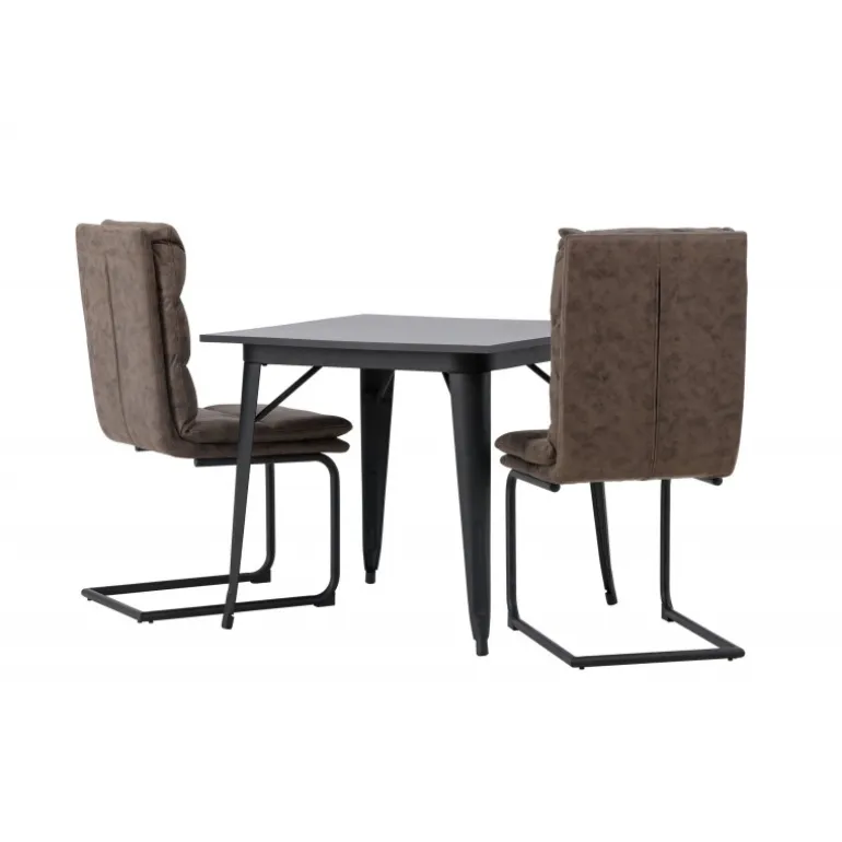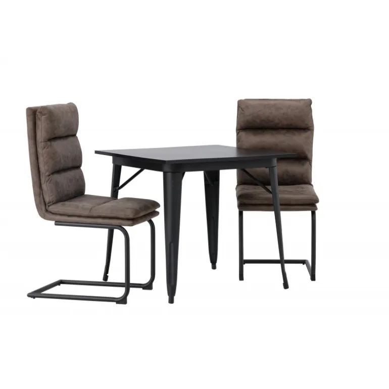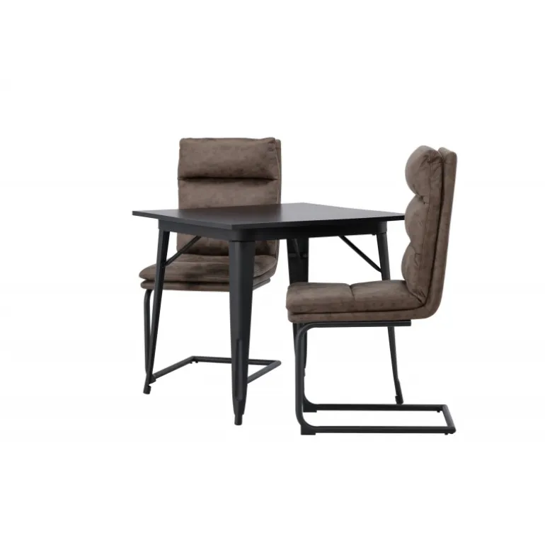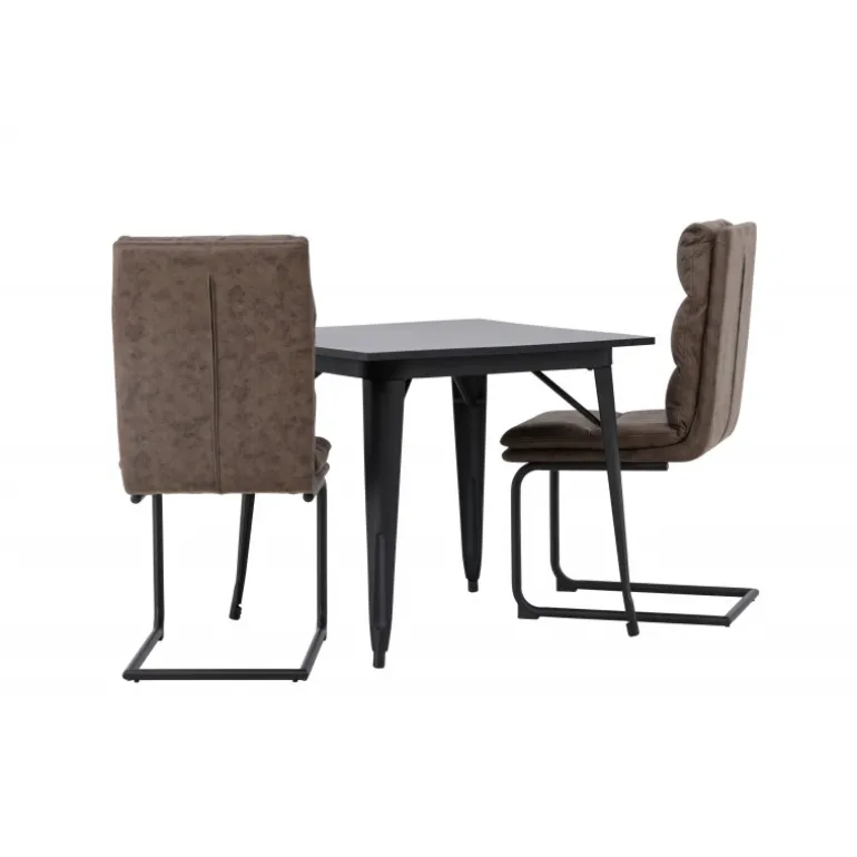 Her vil du gerne sidde komfortabelt i timevis! Vores firkantede spisebord Tempe har en passende størrelse og et trendy, skandinavisk design. Lavet med en bordplade i sort MDF og bordben i sort metal. Her i kombination med vores utroligt komfortable, brune spisebordsstole fra Zizo-serien. Denne stol har et fuldt polstret brunt mikrofibersæde, som er polstret med bløde puder for ekstra komfort. Stolebenene er minimalistiske i sort metal. Undgå at gå på kompromis mellem stil og komfort! Bordmål: 80x80cm.