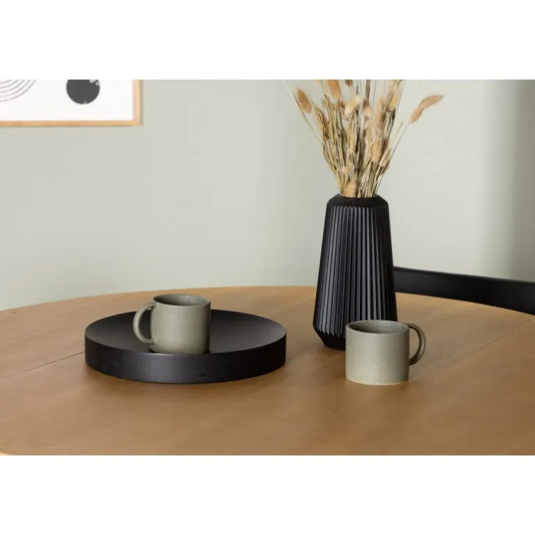 Her får du en stilfuld Spisebordssæt til hjemmets hjerte, der kombinerer minimalistiske former med klassiske materialer! Vores runde spisebord Yakidon er lavet af holdbart gummitræ og har en egefarvet finish, der bidrager til et nostalgisk look. Bordpladen er rund og de let udfladede ben på bordet mødes under midten af bordet, hvilket giver en elegant og balanceret stil til det samlede indtryk. Her i fantastisk kombination med sorte spisebordsstole fra Kenth-serien. Stolens minimalistiske og moderne design giver en luftig følelse i rummet, mens den tilbyder optimal komfort. Med sit sorte polyurethanlæder og polyesterbetræk giver Kenth spisebordsstolene en følelse af luksus og elegance. Du kan læne dig tilbage og slappe af, mens du nyder et lækkert måltid. De dekorative og smalle jernben vil ikke kun tilføre stabilitet, men også et moderne præg til din indretning. Skab en behagelig og indbydende atmosfære, hvor hvert måltid bliver en fornøjelse for hele familien!
