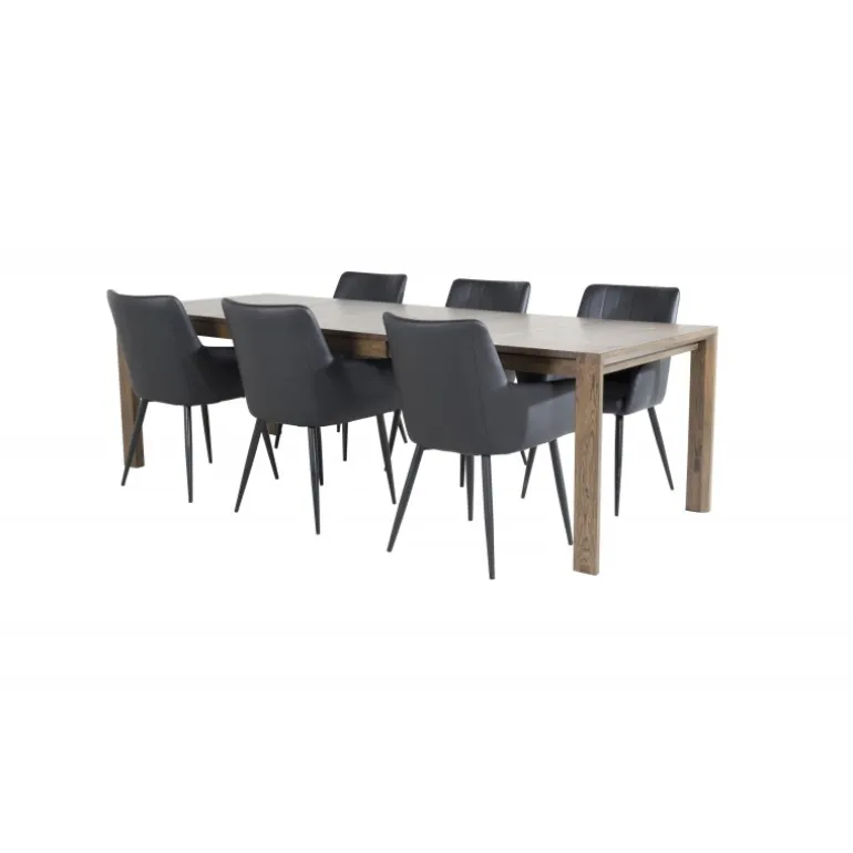 Oplev robust og velvoksne spisestole med vores Comfort serie, kombineret med det stilfulde Slider spisebord i egetræslook med udvidelsesmuligheder. Dette Spisebordssæt fungerer perfekt til både små og store selskaber!