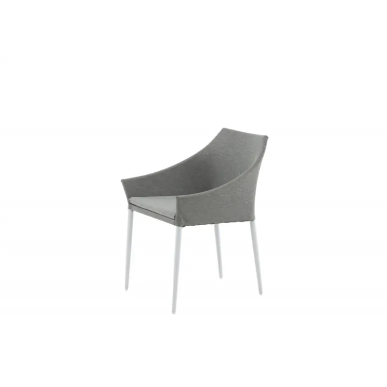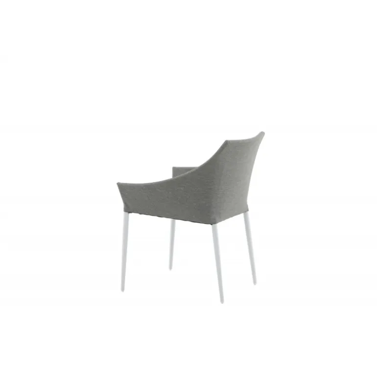 Sid behageligt i Havestole fra Spoga-serien! En ramme i robust design med ben i hvid pulverlakeret metal. Ryg og sæde med integrerede armlæn i grå polyesterstof giver dejlig siddekomfort og en behagelig sædedybde. Matcher perfekt med et flot spisebord, så du får en komplet Loungesæt – Havemøbelsæt til enten udendørsområdet eller altanen! Plejetips: Fjern pletter med det samme, gnid ikke, men forsøg at suge forsigtigt op med en klud. Hvis pletterne ikke forsvinder, kan du prøve en pletfjerner på et mindre synligt område af stoffet først. Vi anbefaler, at større møbler skummes mindst tre gange om året.