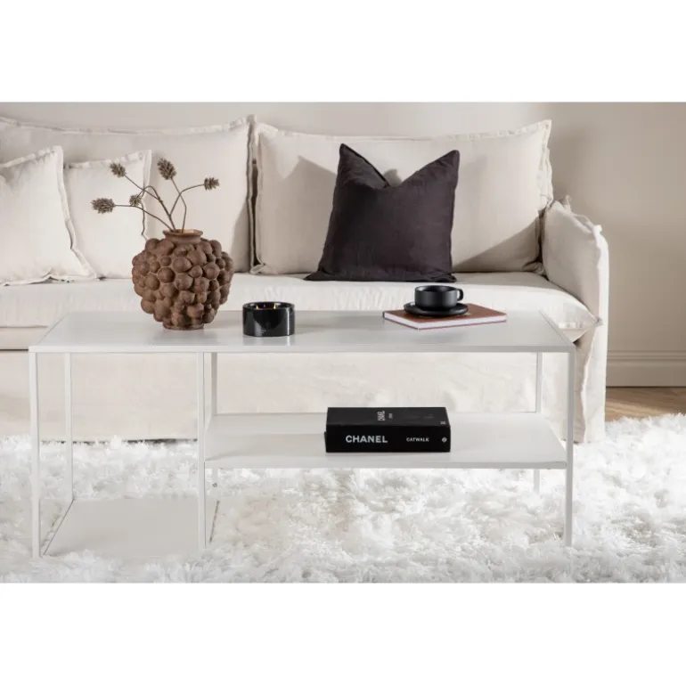 Stilfuld og smart! Staal sofabord i moderne industriel design lavet af hvid pulverlakeret stål med tre praktiske aflastningsflader. Dette bord er et oplagt valg i indretningen med sine stilfulde lige linjer og moderne udtryk! Designet er både glat og elegant og bringer en luftig følelse til rummet. Brug det som sofabord, aflastningsflade eller sidebord – kun fantasien sætter grænser! Dekorer med moderne detaljer og maksimér opbevaringsfladen.