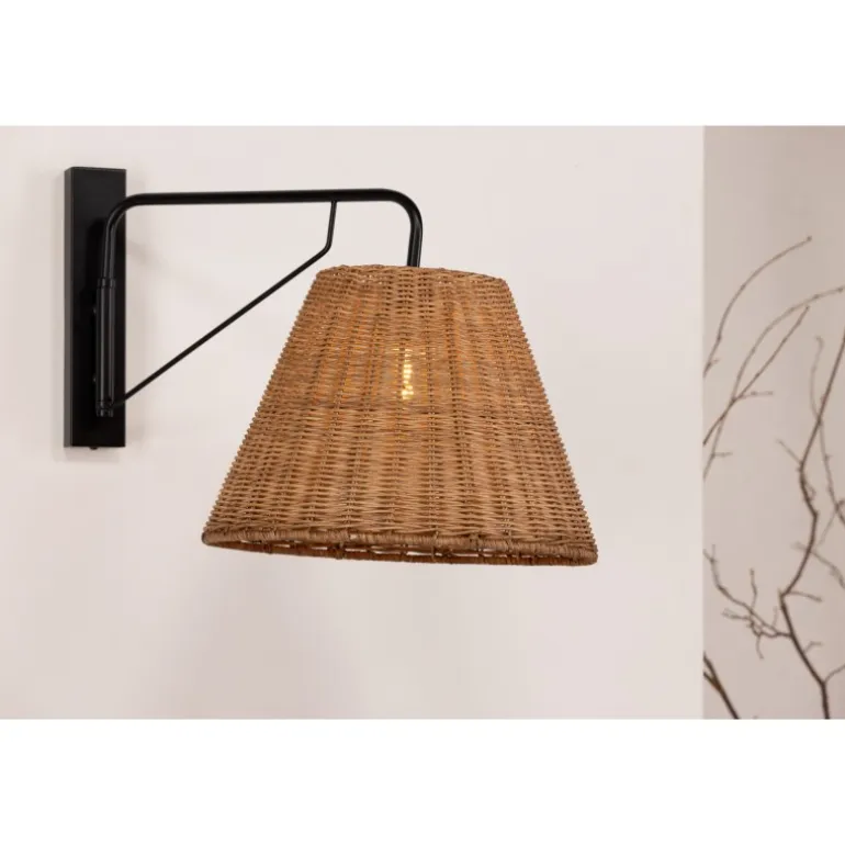 Skab en varm og hyggelig atmosfære i rummet med væglampen Stala! Lampen har en stilfuld sort beslag i jern og en lampeskærm i naturlig farvet rattan. Med denne lampe er du sikker på at være helt i tråd med tidens tendenser. De jordnære farver og det behagelige lys skaber et roligt udtryk, der gør denne lampe perfekt til at placere ved siden af sengen i soveværelset til aftenens læsetid. Lampen kræver en fast installation, som kun må udføres af en elektriker.