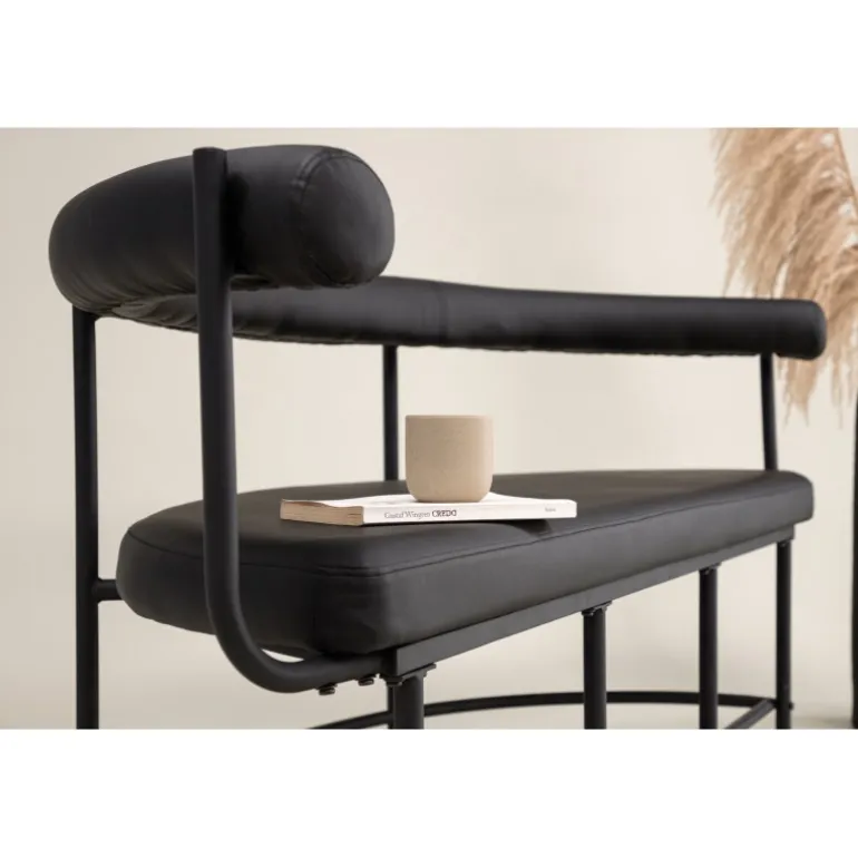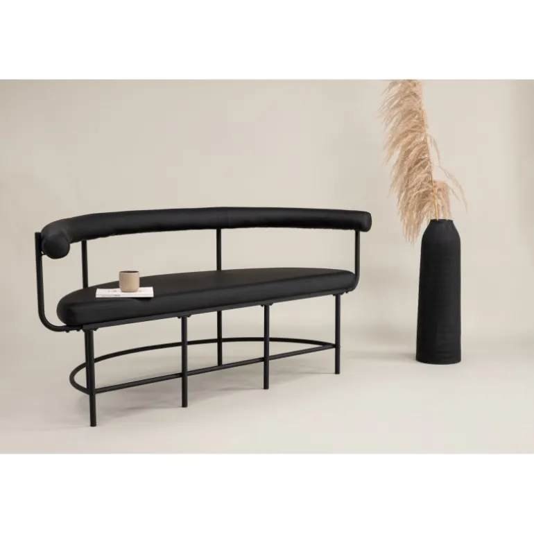 Hæv stilniveauet i dit hjem med denne lækre bænkesofa, der imponerer! Stallhagen bænkesofa fra Josefin Lustigs kollektion har et luksuriøst og gennemtænkt design med moderne former og skandinavisk design. Formet som en halvmåne, er ryggen let rundet og sædet komfortabelt i fræk PU-polstring. Rammestrukturen er minimalistisk i sort stål. Placer den i gangen eller stuen for at skabe en moderne atmosfære i rummet!
