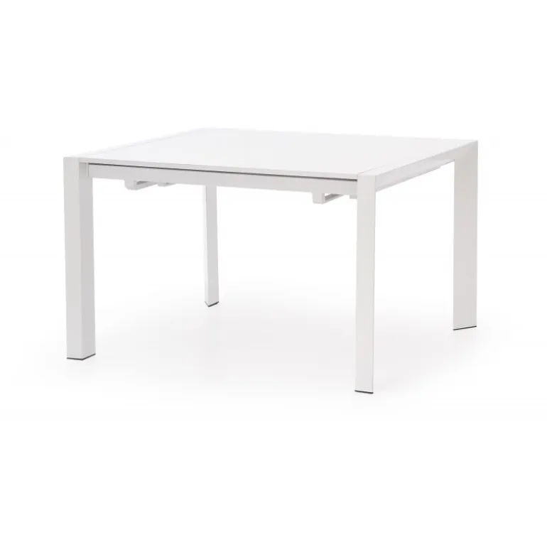 STANFORD Spisebord med udtræk i hvid farve er den perfekte løsning til både små og store sammenkomster. Med dimensionerne 130÷210/80/76 cm kan dette bord nemt justeres for at give plads til flere gæster. Bordet er fremstillet af lakeret MDF og malet stål, hvilket giver det et moderne og stilrent udseende, der passer ind i enhver indretning.