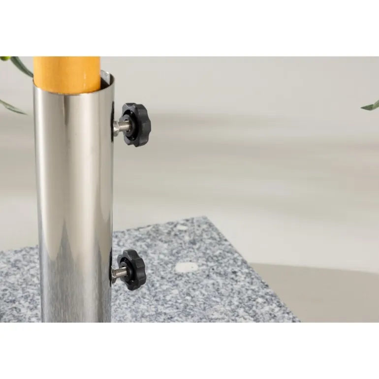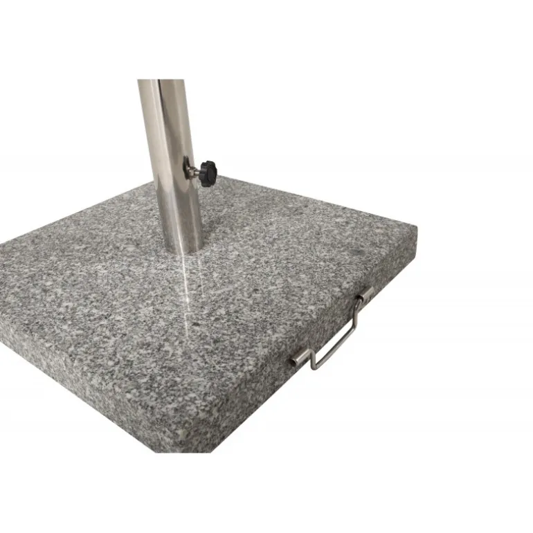 Oplev elegancen ved vores Stathera Parasolsten i en smuk marmorlignende farve. Denne robuste parasolfod vejer 40 kg og har et praktisk håndtag, der gør den nem at flytte. Lavet af holdbar granit, er den designet til at give stabilitet og stil til din udendørs plads. For at sikre lang levetid, bør parasolstenen opbevares tørt og varmt ved risiko for frost for at undgå frostrevner.
