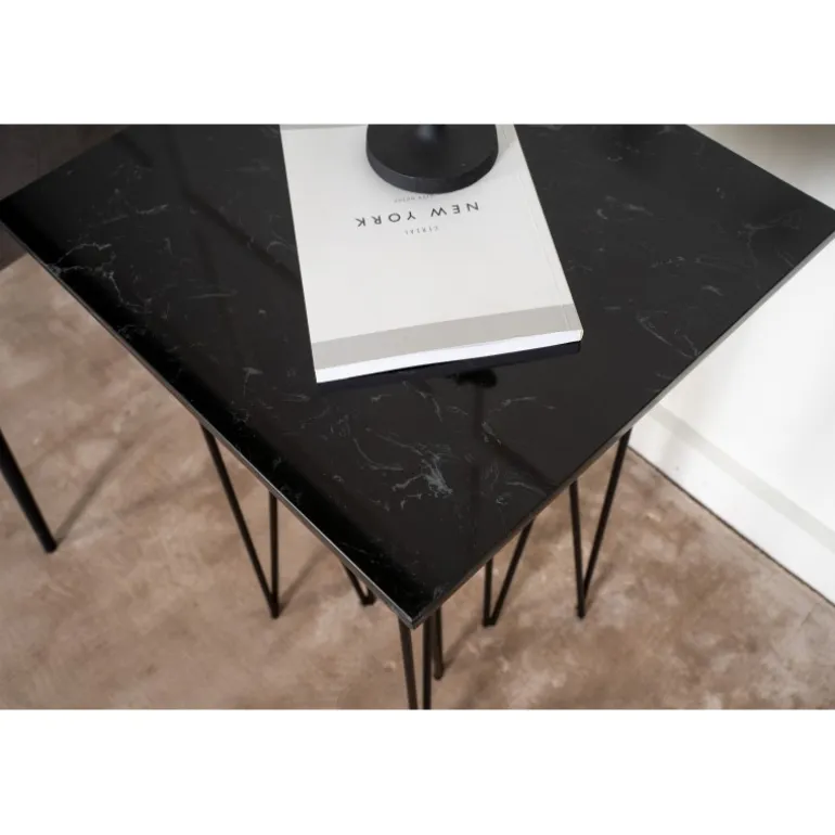 Skab en moderne stil i soveværelset eller ved siden af sofagruppen med hjælp fra et trendy sidebord i sort stål! Dette sidebord tilhører Sten-serien og vil give dit hjem en vidunderlig indretningsfølelse med sin unikke og spættede bordplade samt en utroligt dekorativ sort metalbase. Det gennemtænkte overordnede design gør simpelthen dette sidebord til en stilfuld indretningsdetalje, der vil hæve hele rummets niveau af elegance. Den kunstige stenplade giver en følelse af luksus og eksklusivitet, og den dekorative base skaber et personligt præg. Brug det som et stilfuldt natbord og hav alt inden for rækkevidde, eller placer det i stuen som et fantastisk sidebord til at fremvise moderne dekorationer eller skabe ekstra opbevaringsplads. Oplev den perfekte kombination af stil og funktion med dette fantastiske sidebord, der vil være en trofast følgesvend i mange år fremover! Mål: 40x40cm.