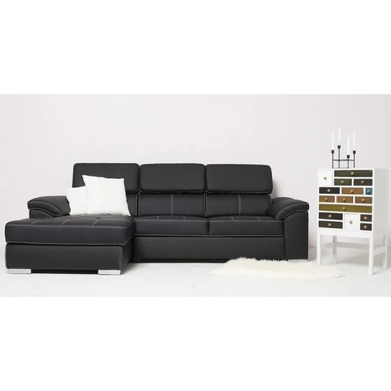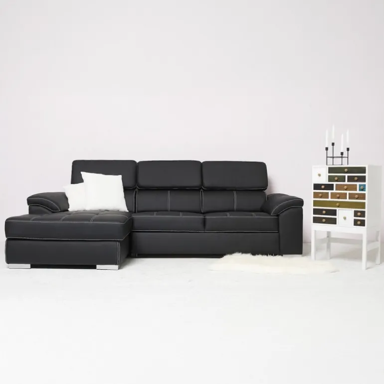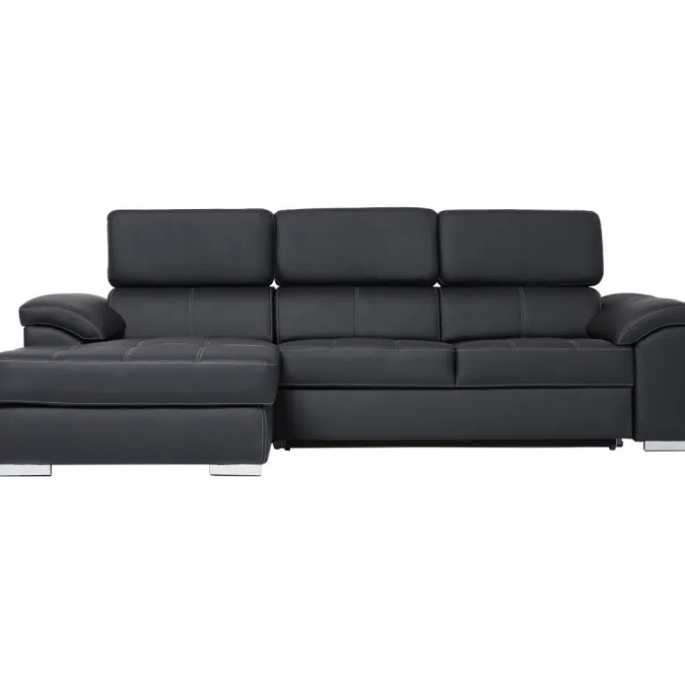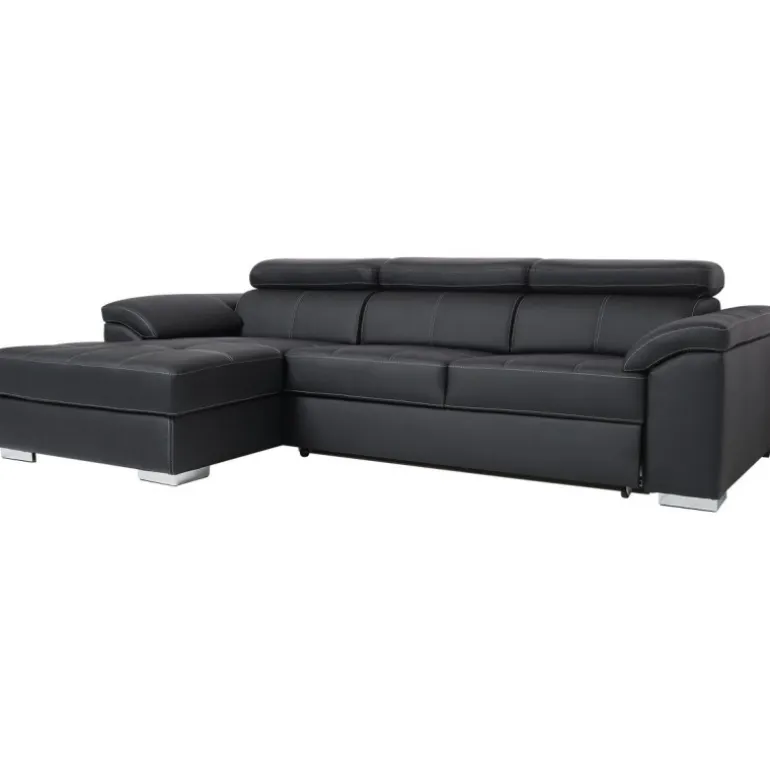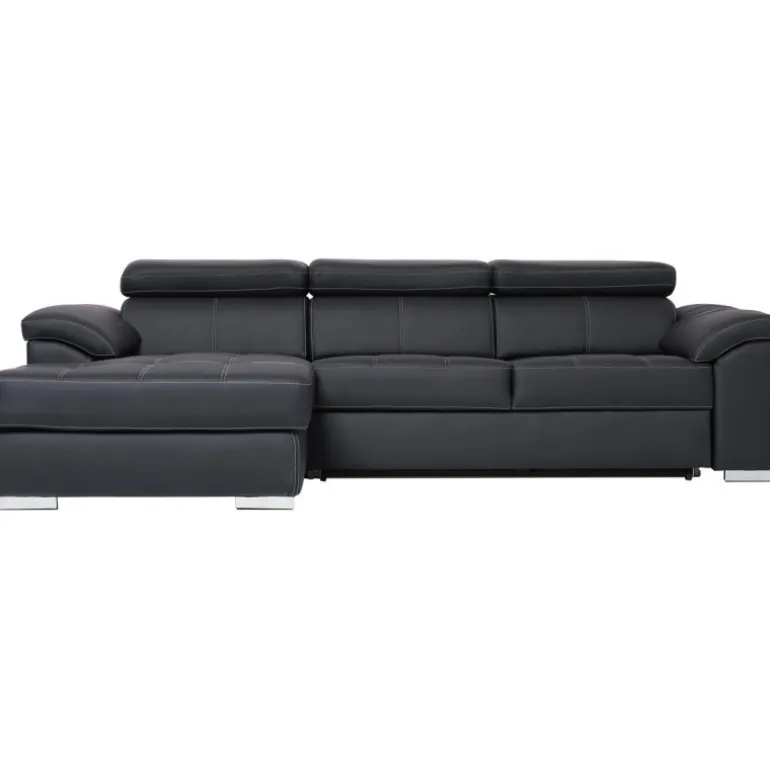 Stitch sovesofa med venstrevendt chaiselong og nakkestøtter med vippefunktion. Sofaen kan slåes ud og omdannes til en bekvemmelig soveplads for 2 personer.