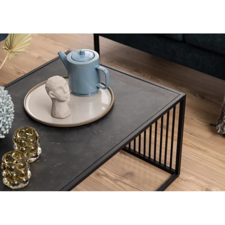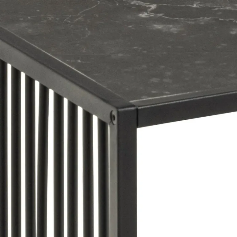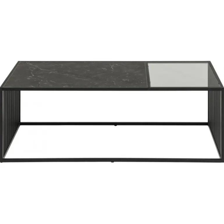 Strington sofabord melamin ru mat sort marmor/ glas røgfarvet, stel metal pulverlakeret ru, mat sort L:120 B:60 H:40 cm