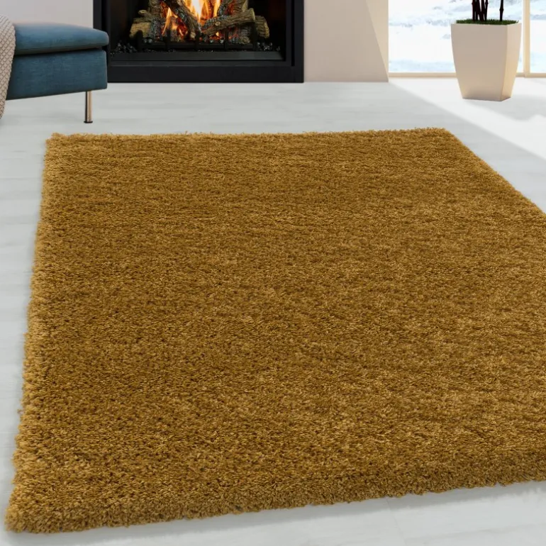 Sydney Shaggy tæppe Ensfarvet – Guld