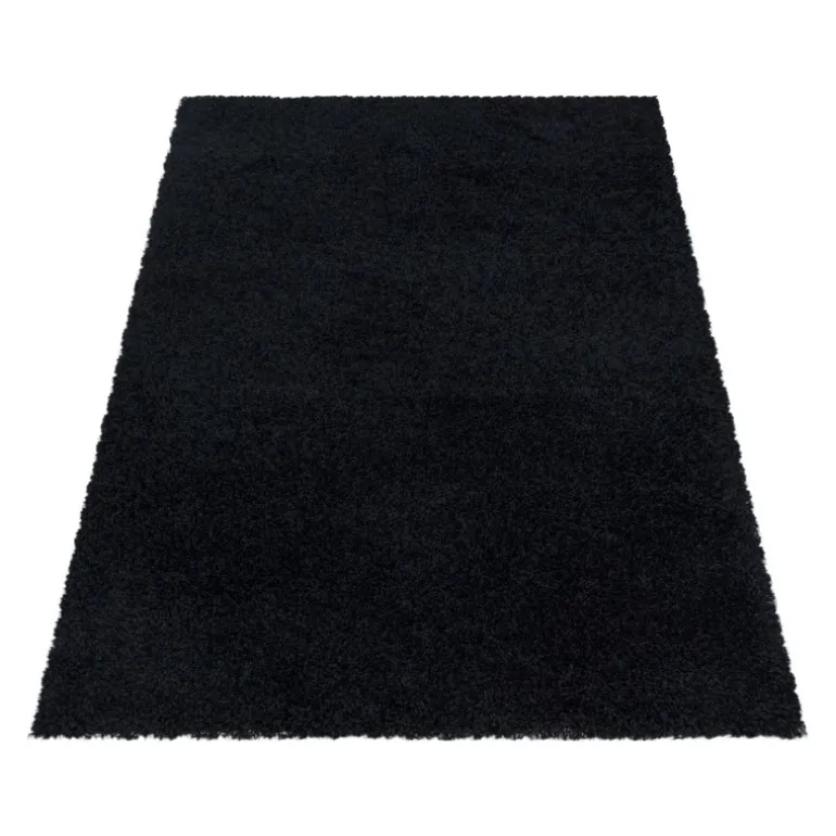 Sydney Shaggy tæppe Ensfarvet – Sort