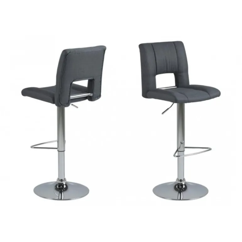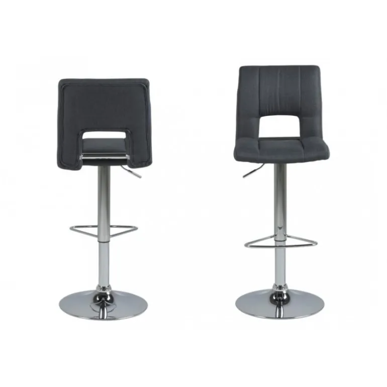 Sylvia barstol Corsica stof mørkegrå 20, gaspatron TÜV, fodstøtte, trompetfod krom, pakning 2 stk