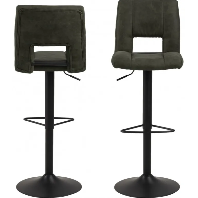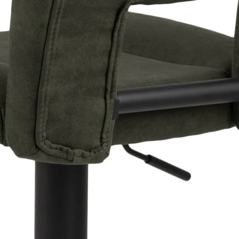 Sylvia barstol Preston stof olivengrøn 38, gaspatron TÜV, fodstøtte, trompetfod pulverlakeret ru, mat sort, Prisen er pr stol, du skal derfor mindst købe 2 stole