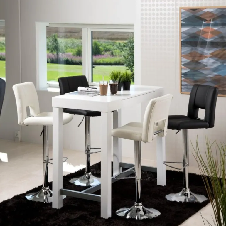 Sylvia barstol læderlook sort PU, gaspatron TÜV, fodstøtte, trompetfod krom, pakning 2 stk