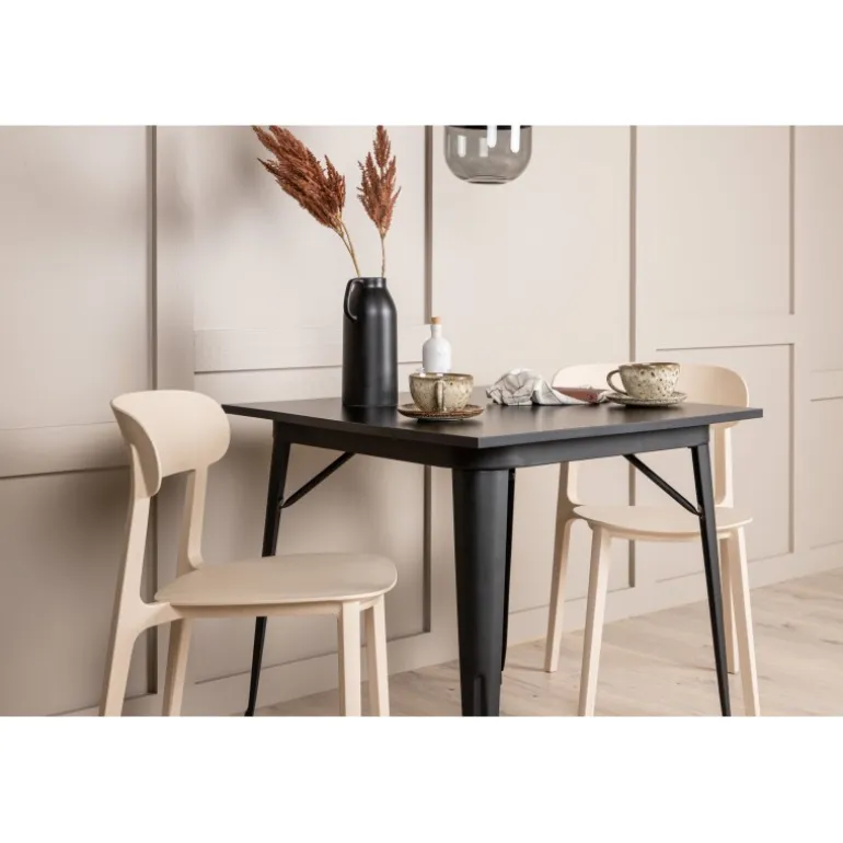 Stilfuld og smart – den perfekte Spisebordssæt til den mindre køkken! Tempe spisebord har et skandinavisk design og klassiske former. Lavet med en kvadratisk bordplade i sort MDF og bordben i sort metal. Her sammen med 2 klassiske spisebordsstole fra Åstol-serien. Stolen er lavet i en smagfuld lys-polished farve i trækomposit med et luftigt design og nordiske lige former. Indret hjertet af hjemmet indbydende og behageligt!